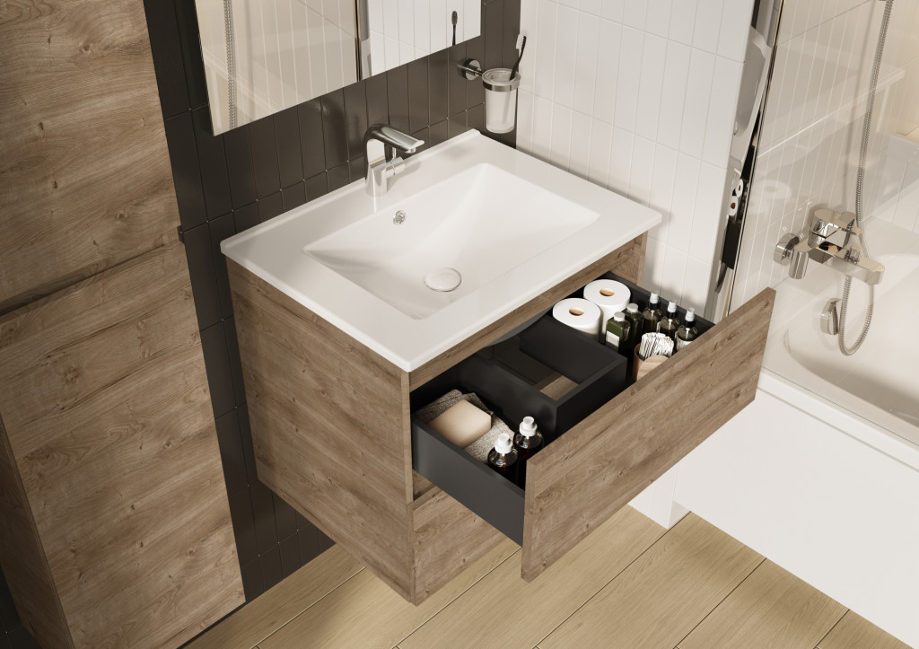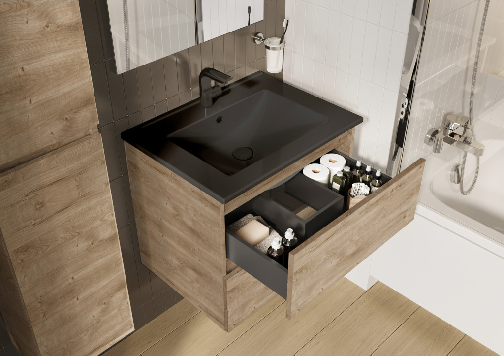 Sussex features a handleless design on the drawers and doors with the option of either White Gloss or Black Matt basin (sold separately)