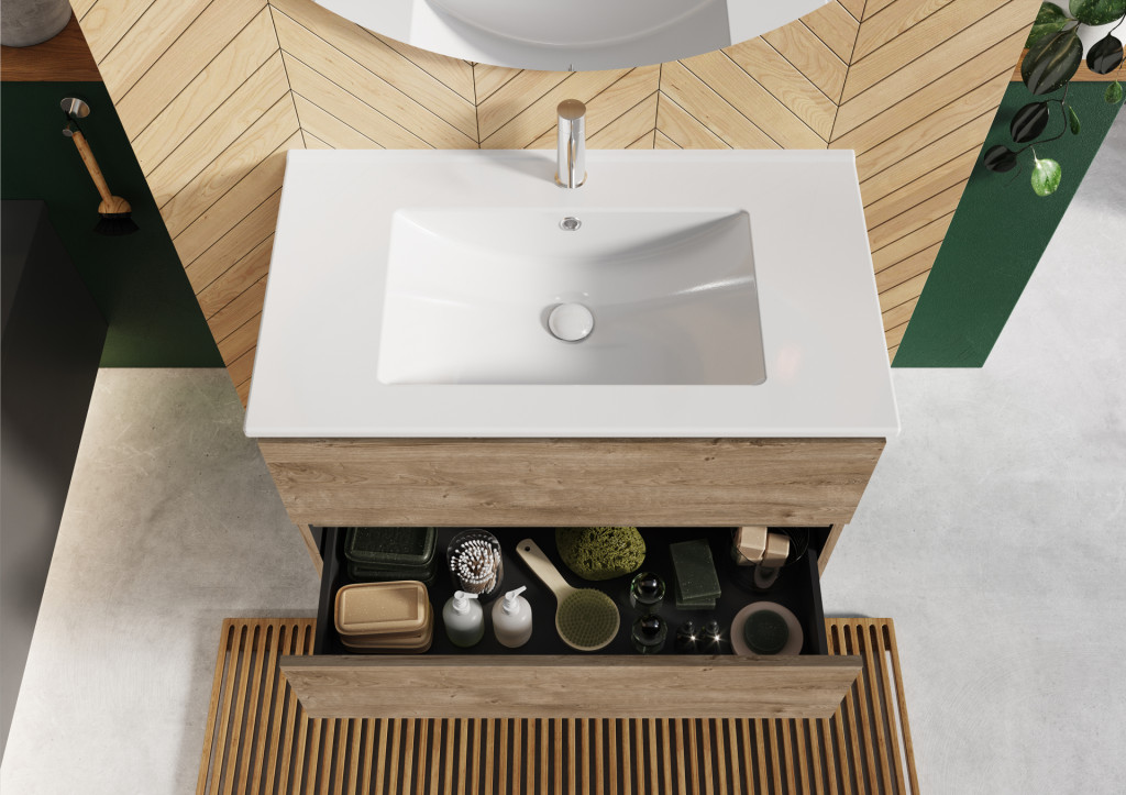 Sussex features a handleless design on the drawers and doors with the option of either White Gloss or Black Matt basin (sold separately)