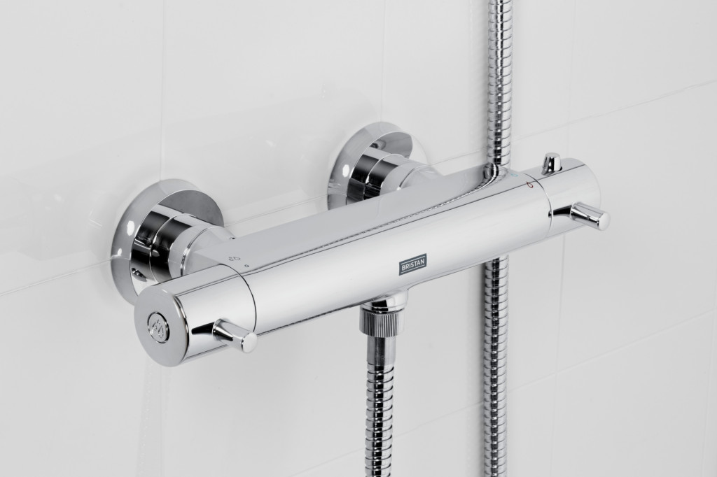 - Thermostatic cartridge with preset temperature stop at 38°C, can be over-ridden to a maximum of 46°C