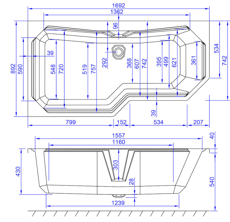 Carron Highgate 1700x540 Showerbath Lshape Bath Panel Carronite™ Reinforced