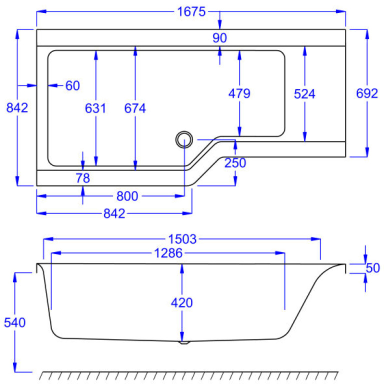 • Baths Shower Baths L Shaped Baths Carron Edge Showerbath 1675 LH