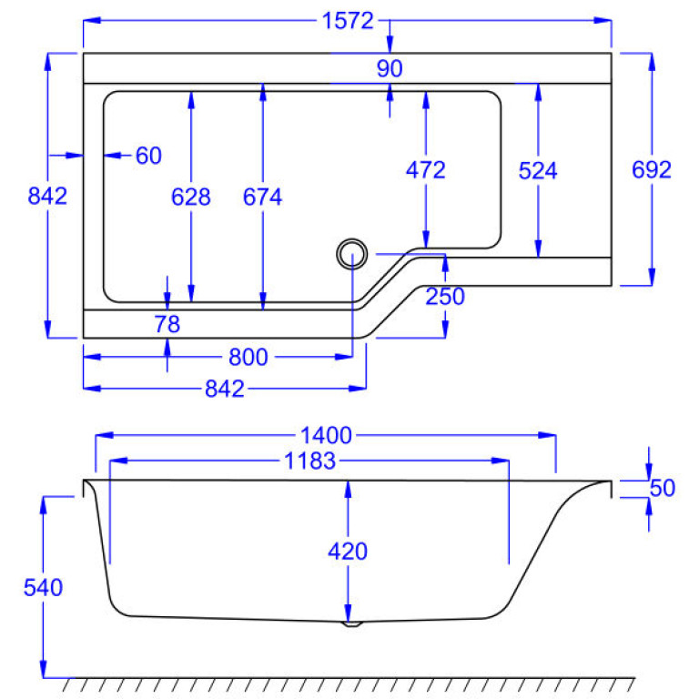 Carron Edge 1575 Showerbath Lshape Bath Panel Carronite™ Reinforced