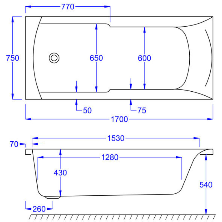 Carron Imperial Single Ended Bath with Grips 1600x700 Carronite™ Reinforced