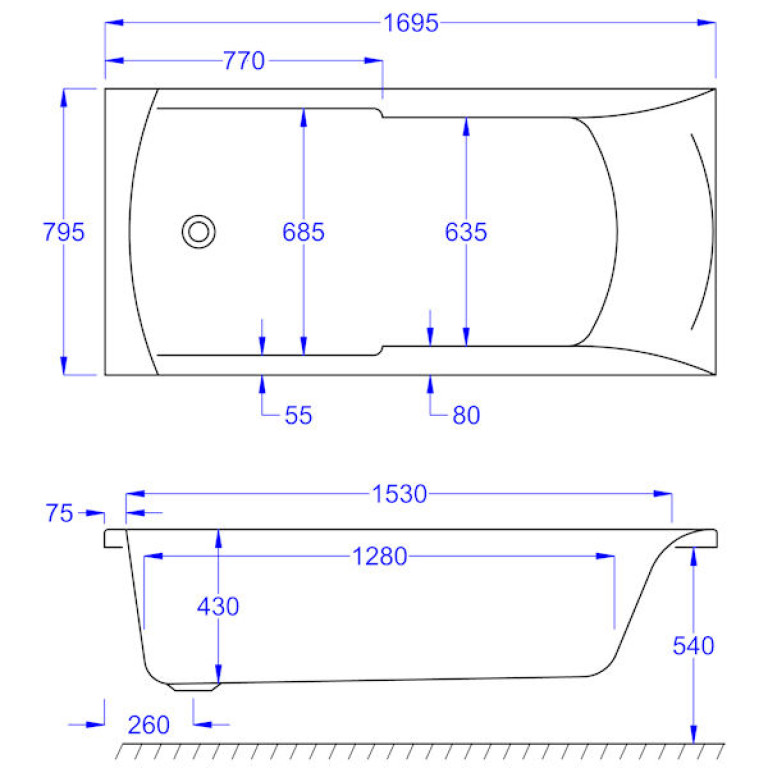 Carron Alpha Double Ended Bath 1800x800 Carronite™ Reinforced