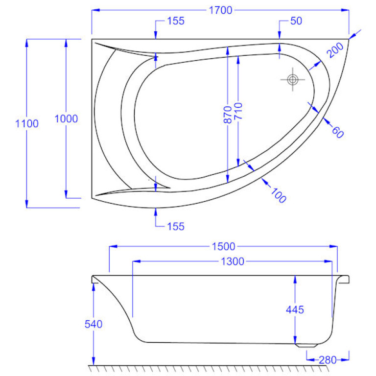 Carron Omege Offset Corner Bath RH Carronite™ Reinforced