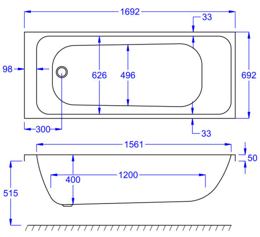 Carron Profile Single Ended Bath 1600x700 Carronite™ Reinforced