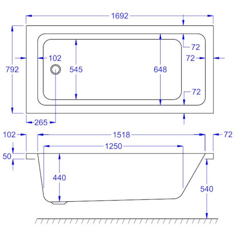 Carron Quantum Single Ended Bath 1800x725 Carronite™ Reinforced
