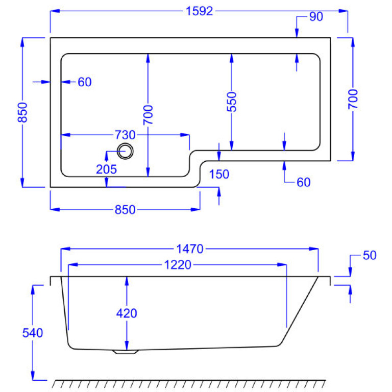 Carron Quantum Showerbath 1600 Front Bath Panel Carronite™ Reinforced