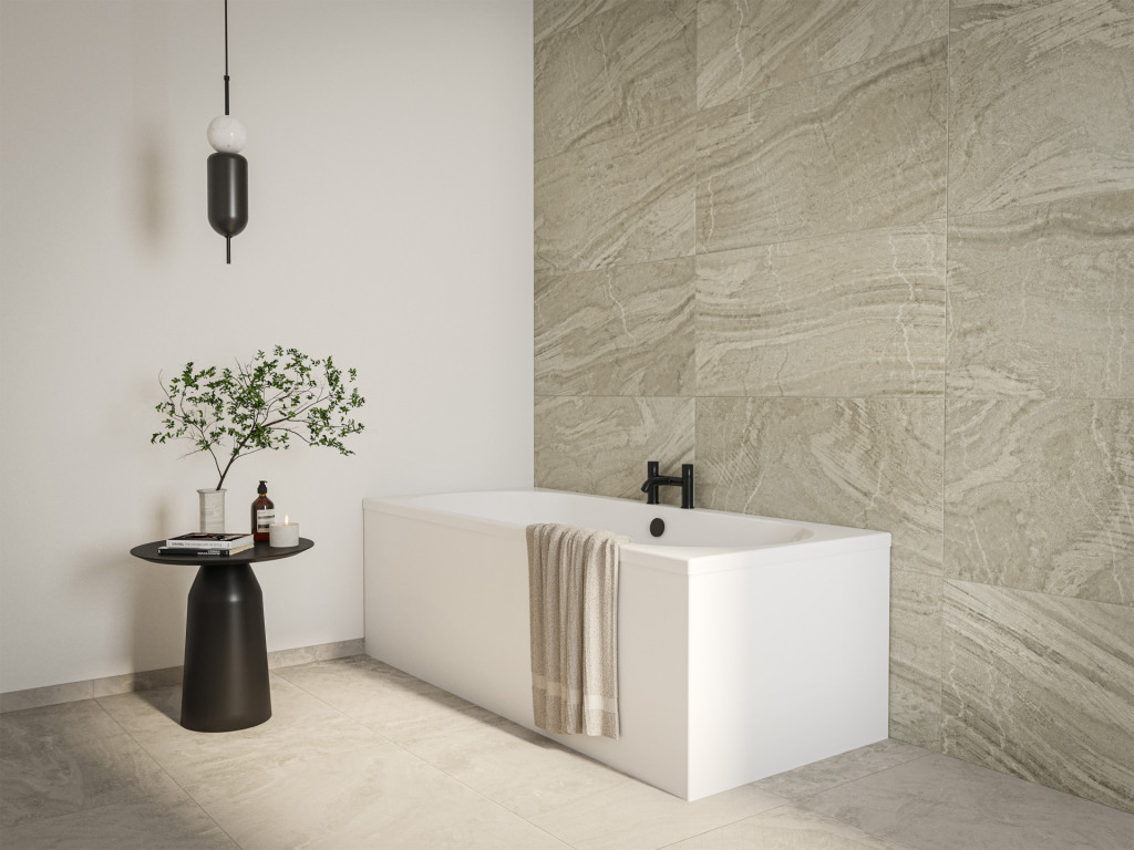 The new Angelo slim round baths are designed with a comfortable rounded interior and beautiful slim edges that can still support a bath screen. Single-ended baths combine elegance and practicality, with the tap and waste positioned at one end to maximise space and comfort for a relaxing soak. The Angelo Slim Round Bath is available in 4 sizes, from 1600 x 700mm up to 1800 x 800mm.