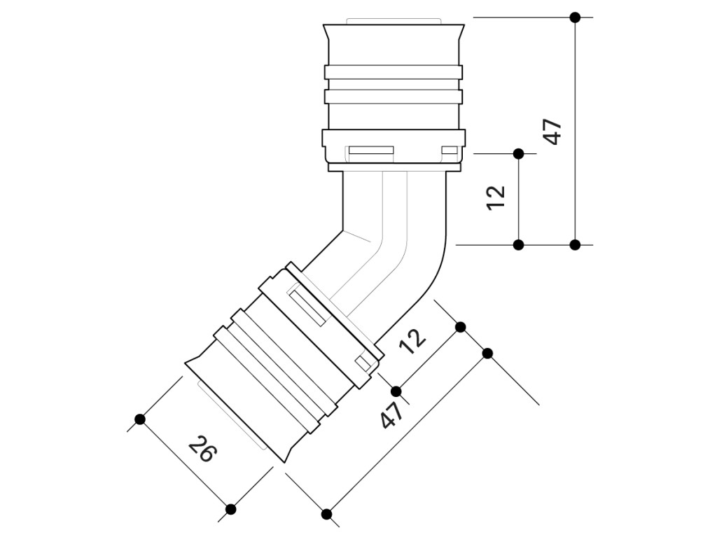 - Alpex-duo XS Elbow 45 Degrees PPSU
