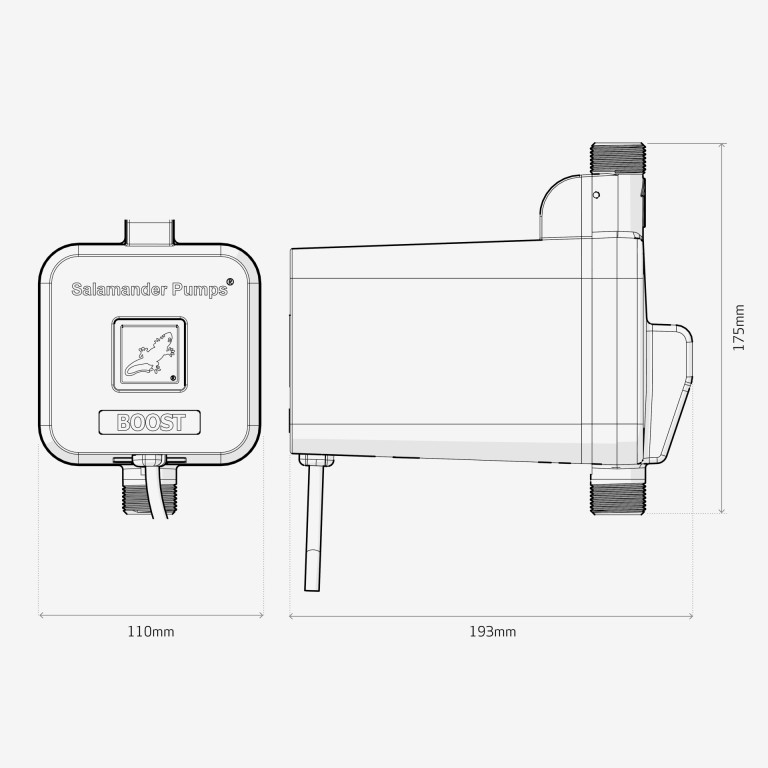 - Boosts mains water pressure and flow up to 12 litres per minute