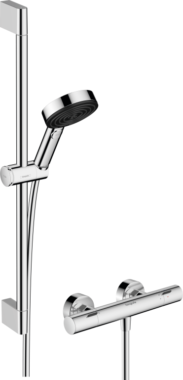 The accessories you need, all together: The Pulsify Select S 105 EcoSmart shower set with shower rail (0.65 m) and EcoStat Fine thermostatic mixer from hansgrohe makes everyday life more enjoyable. All components are perfectly coordinated and will inspire you with more design, comfort and safety. Get ready for the famous hansgrohe showering pleasure in your home.