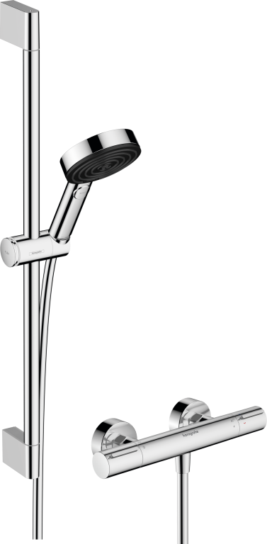 The accessories you need, all together: The Pulsify Select S 105 EcoSmart shower set with shower rail (0.65 m) and EcoStat element thermostatic mixer from hansgrohe makes everyday life more enjoyable. All components are perfectly coordinated and will inspire you with more design, comfort and safety. Get ready for the famous hansgrohe showering pleasure in your home.
